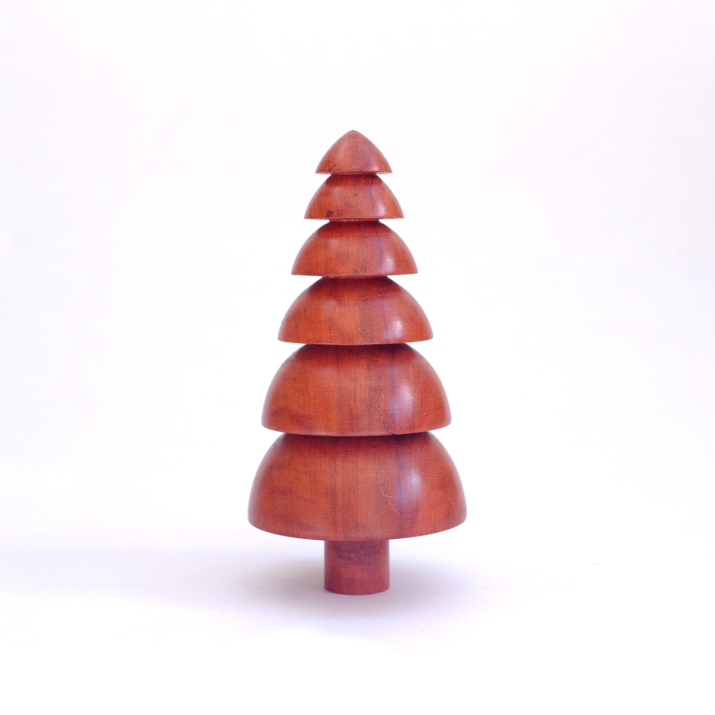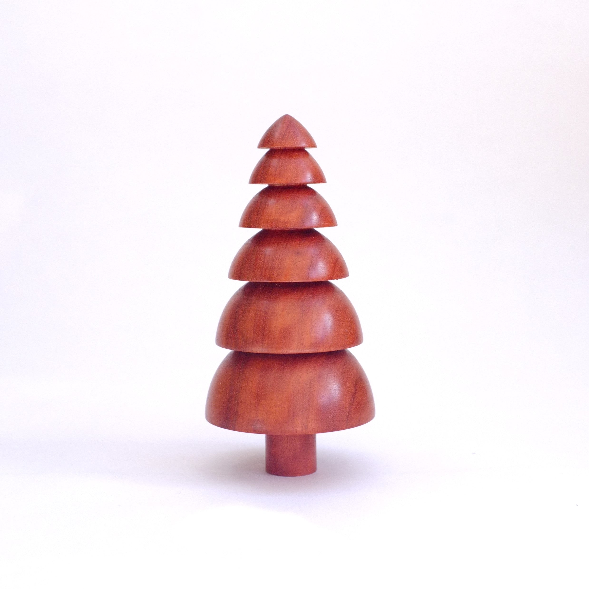 This multilayered tree is made from Australian red gum, showcasing a beautiful warm reddish tone that highlights the depth and richness of the wood.