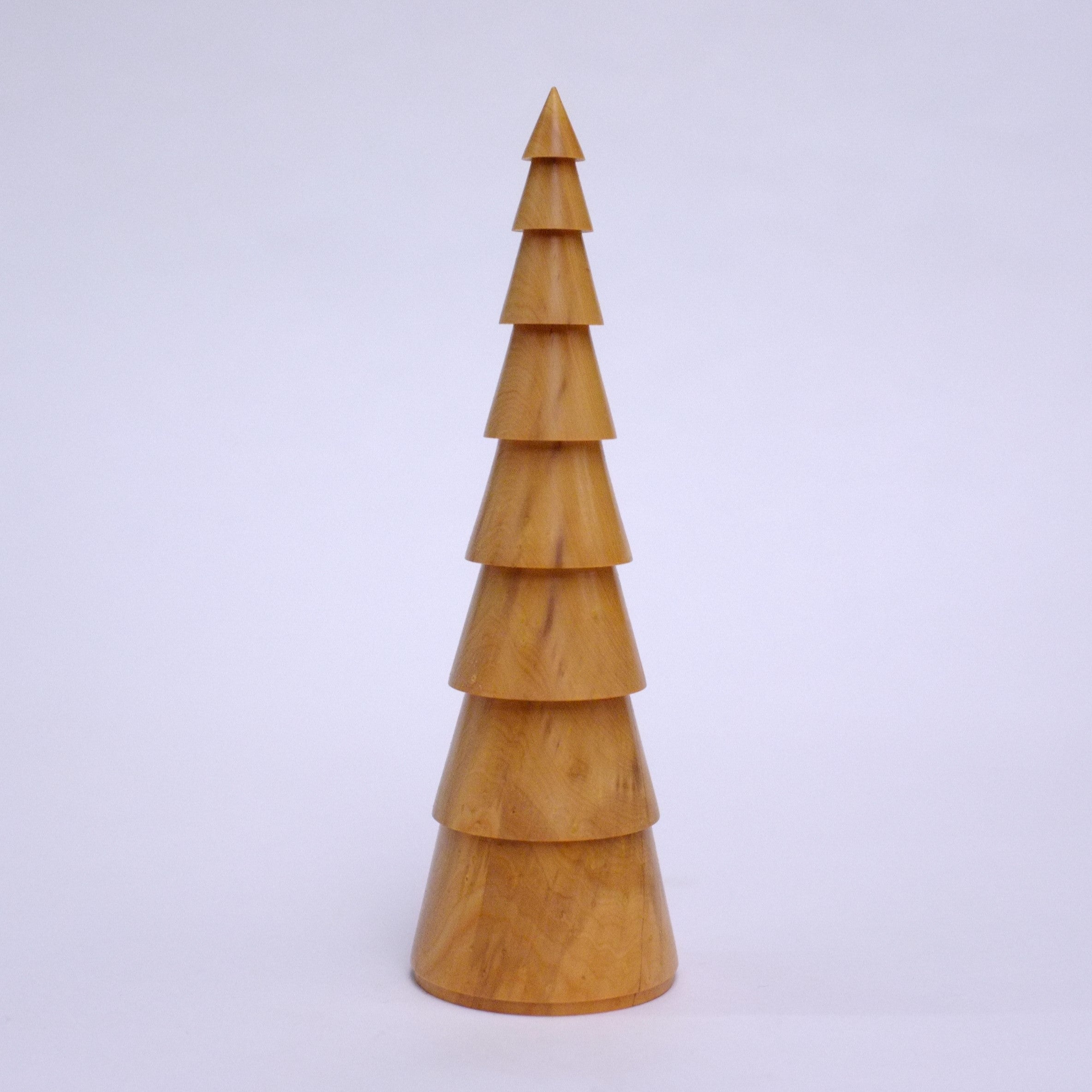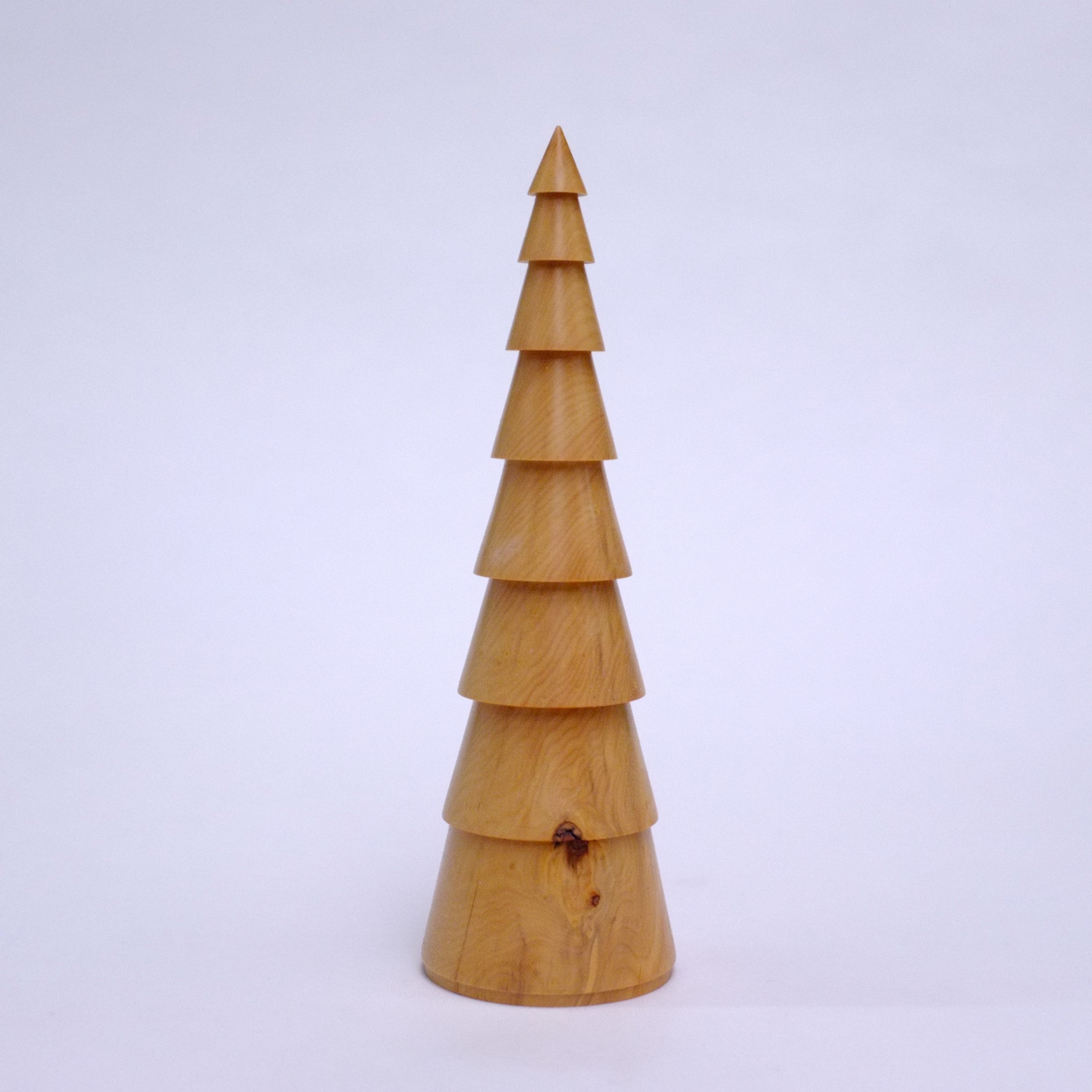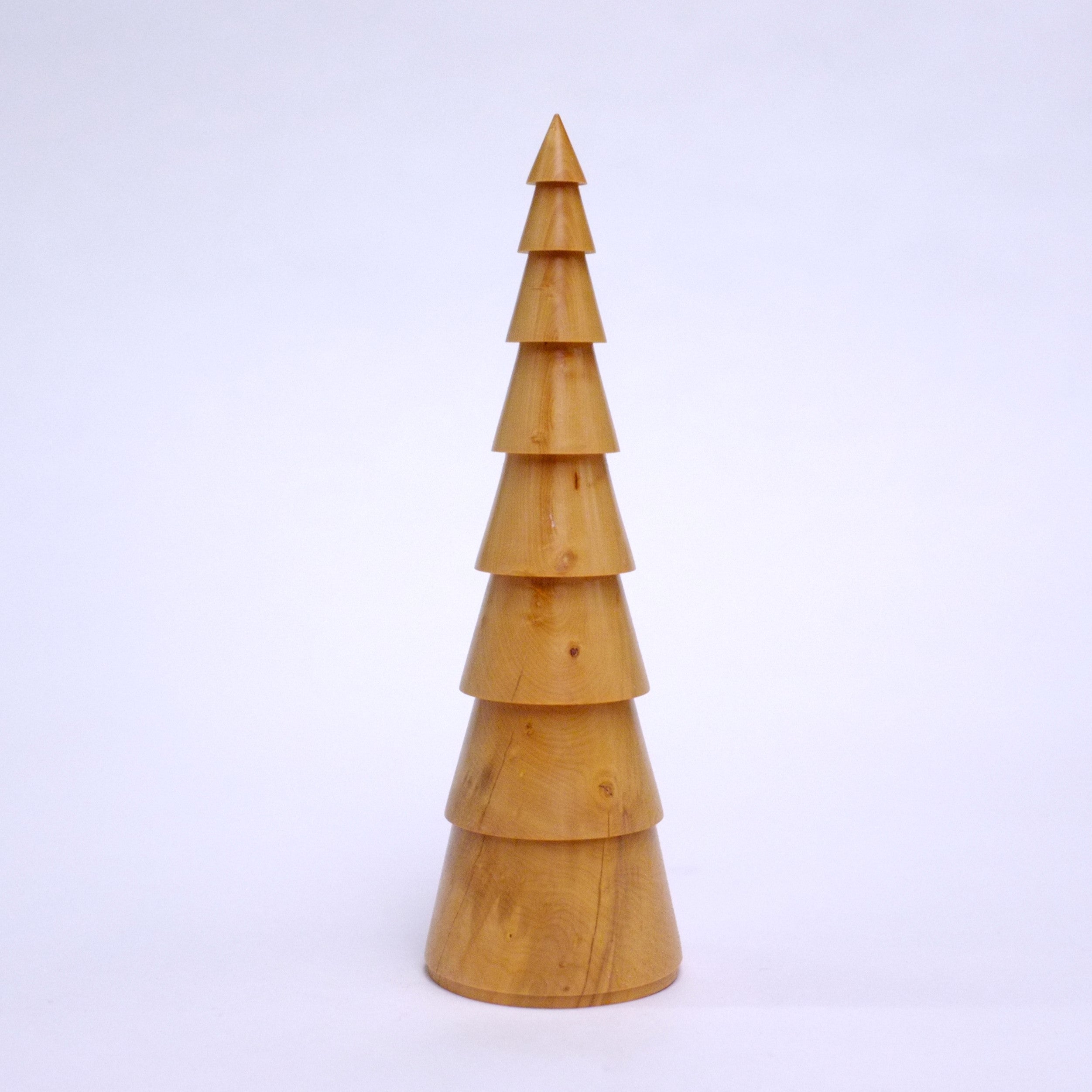 A tall Douglas Tree made from boxwood, with small knots and splits adding subtle character to the smooth, pale timber. This wood is extremely dense and is usually used for making tool handles.