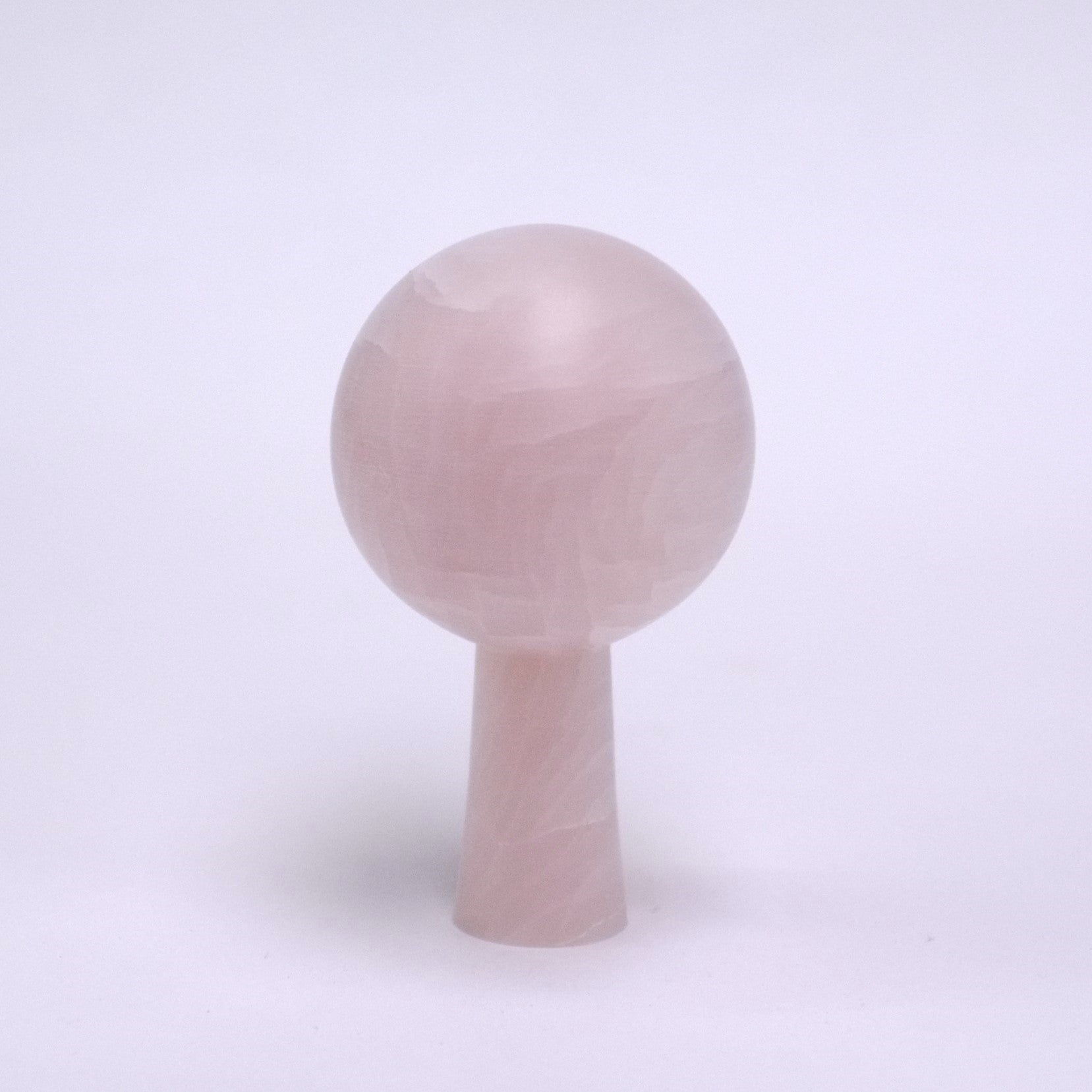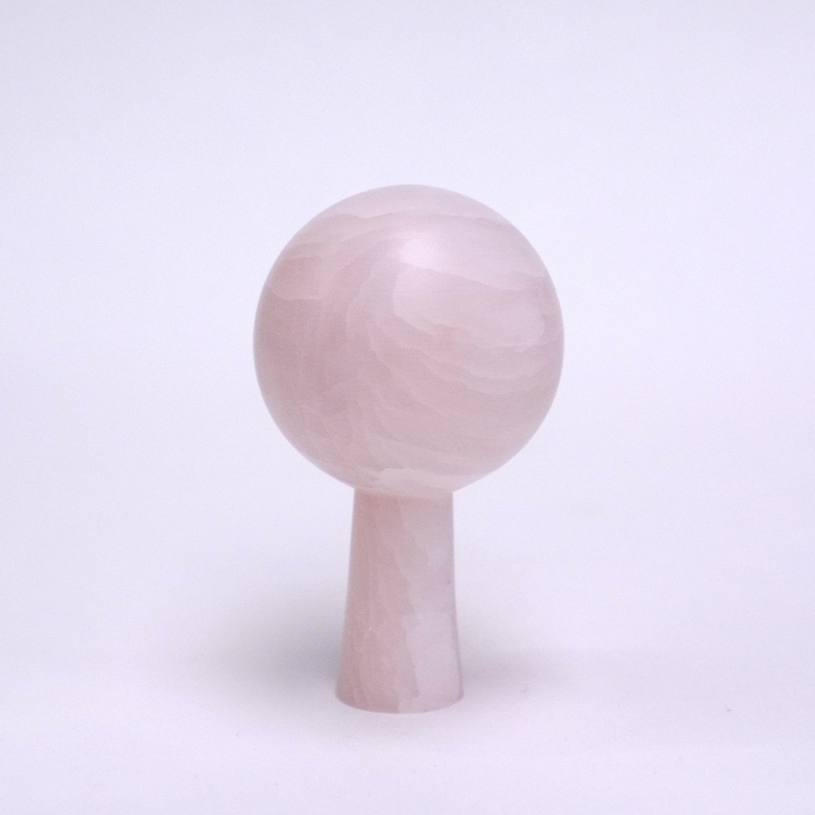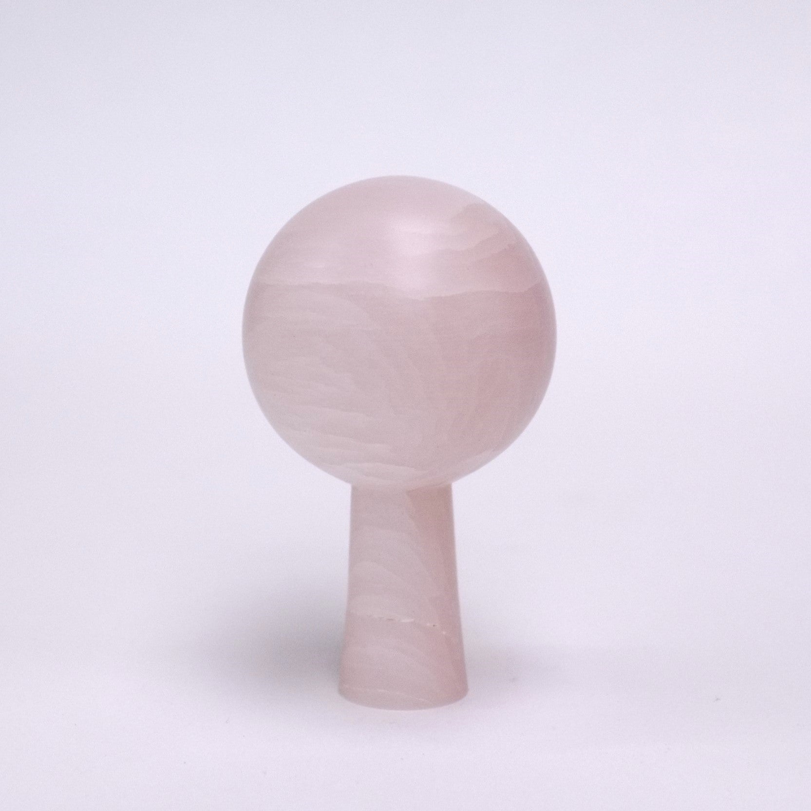 A Ball Tree carved from the palest pink soapstone, with a soft, barely-there blush and a smooth, polished finish.