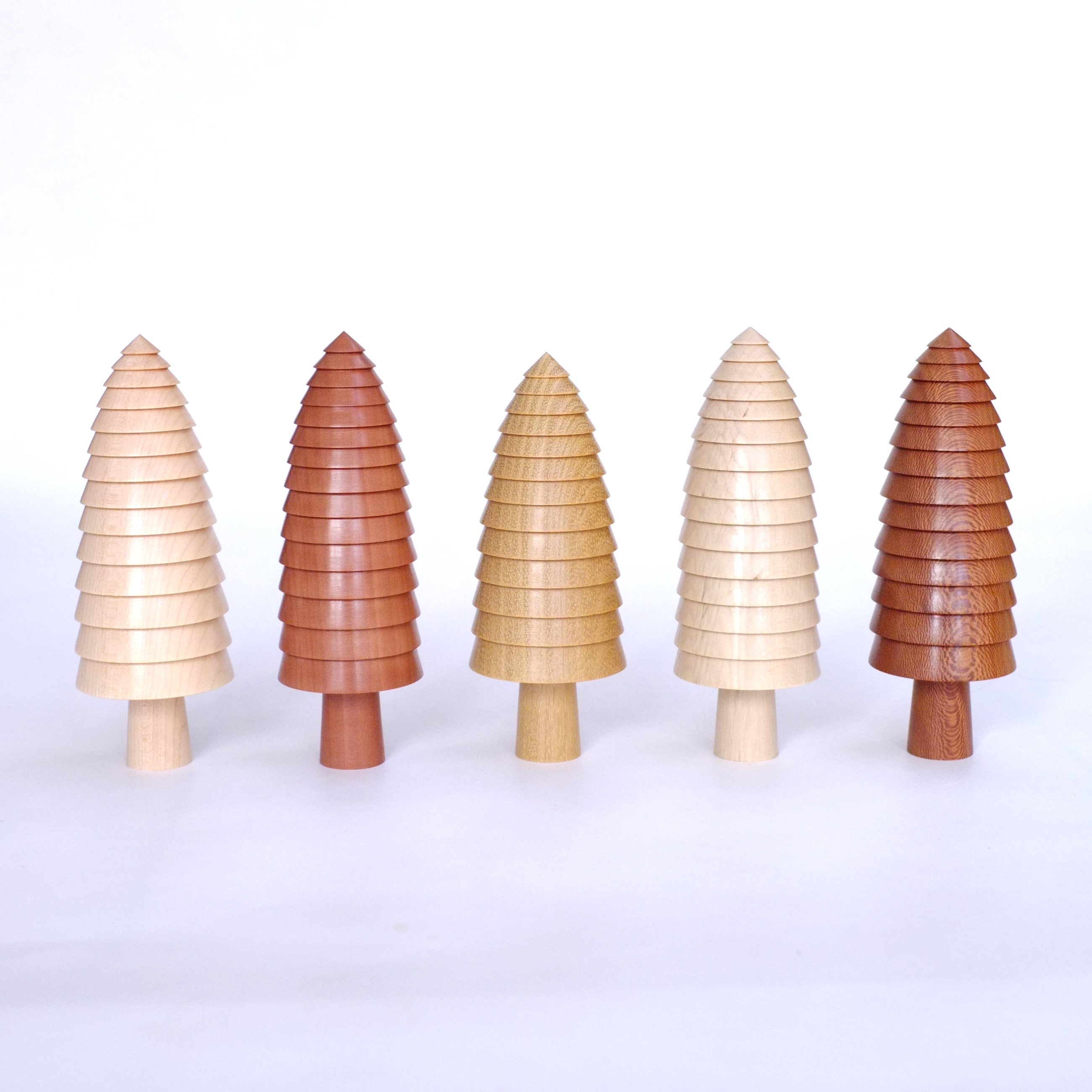 Individually hand-turned on a lathe and made from a wide variety of woods, each one of these wooden Trees has its own uniqueness and character.