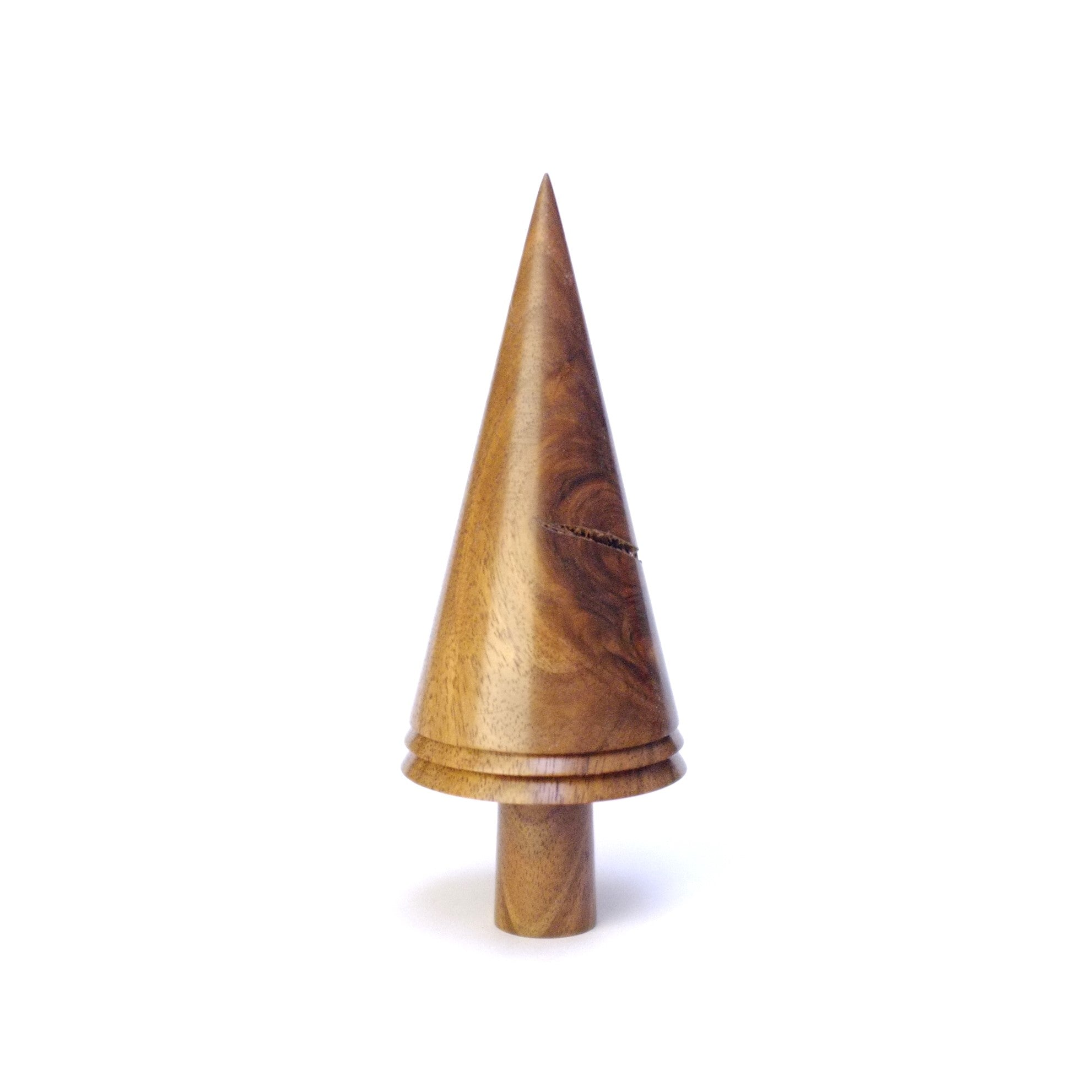 The split on this pointed walnut Tree contrasts beautifully with its smooth, polished form, making it truly unique.