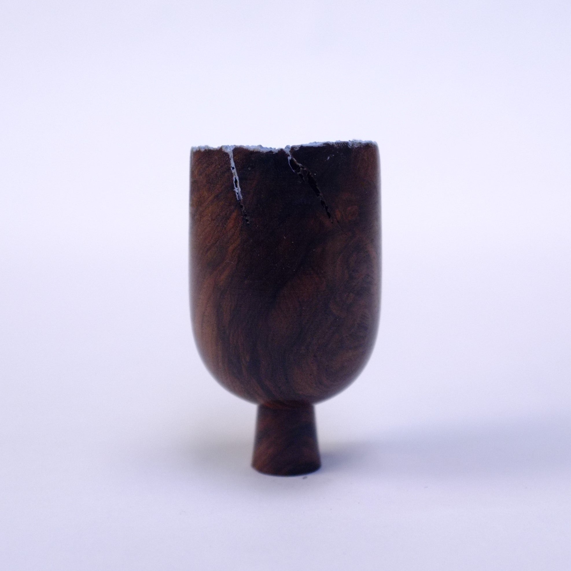 This Tree, made from richly patterned English walnut, features an unturned top finished with the original spray paint used to mark the end of boards of timber - a subtle meeting of raw material and modern design. Natural splits that add texture and character to the rich grain.