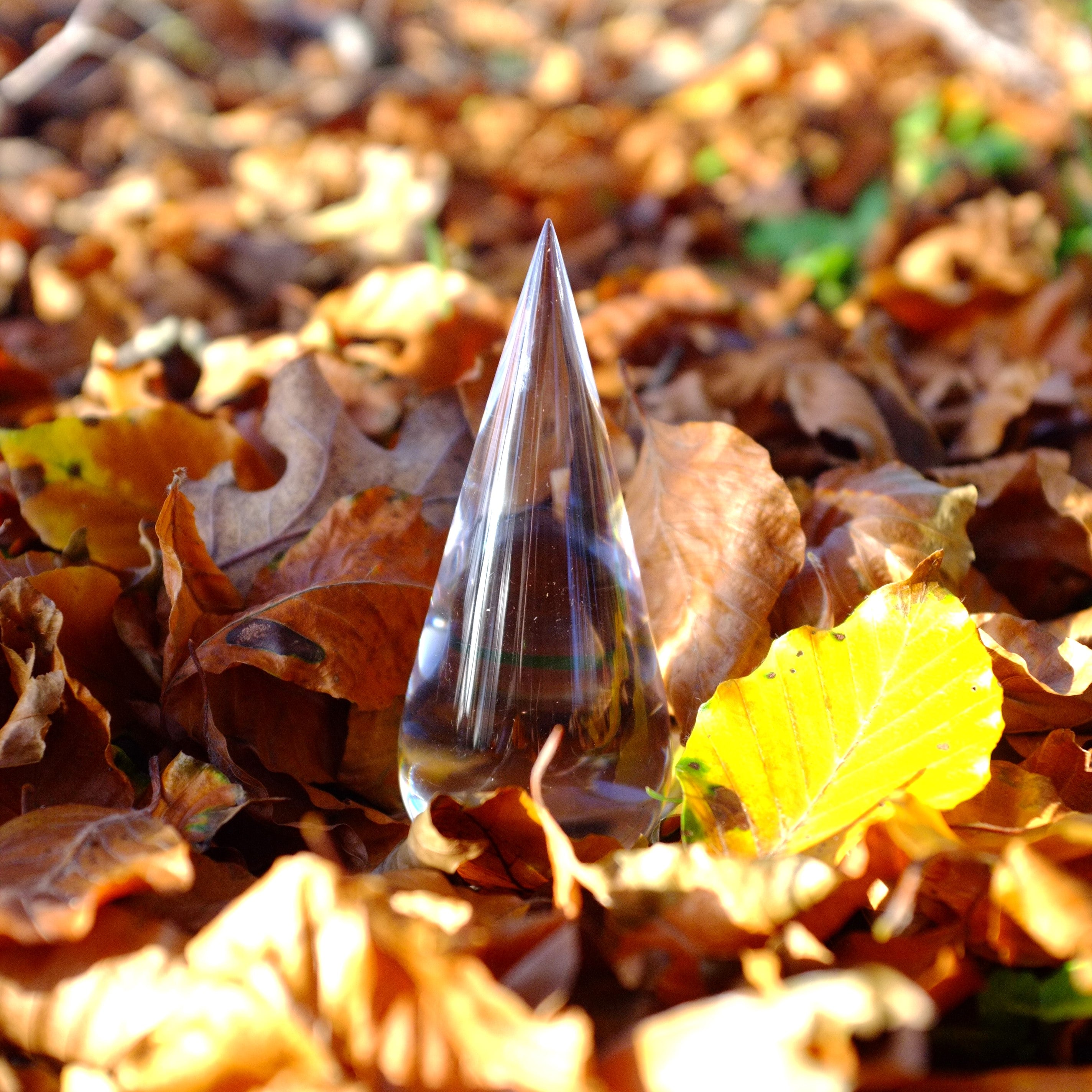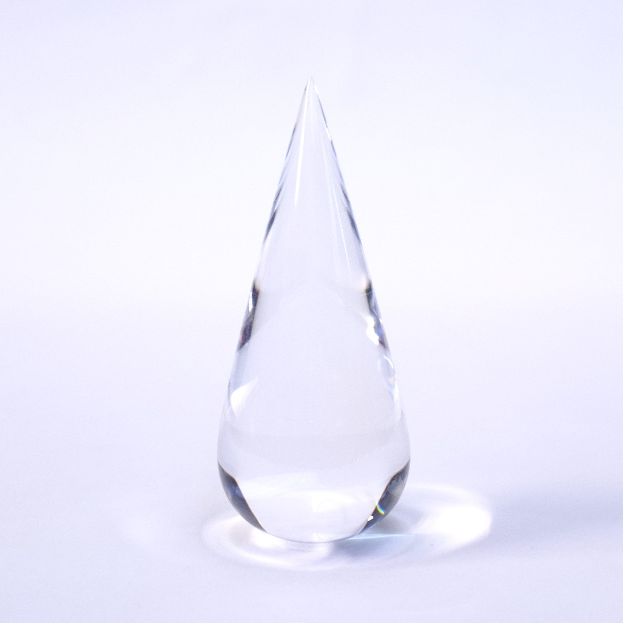 A teardrop-shaped Tree turned from clear acrylic, perfectly smooth and crystal clear.