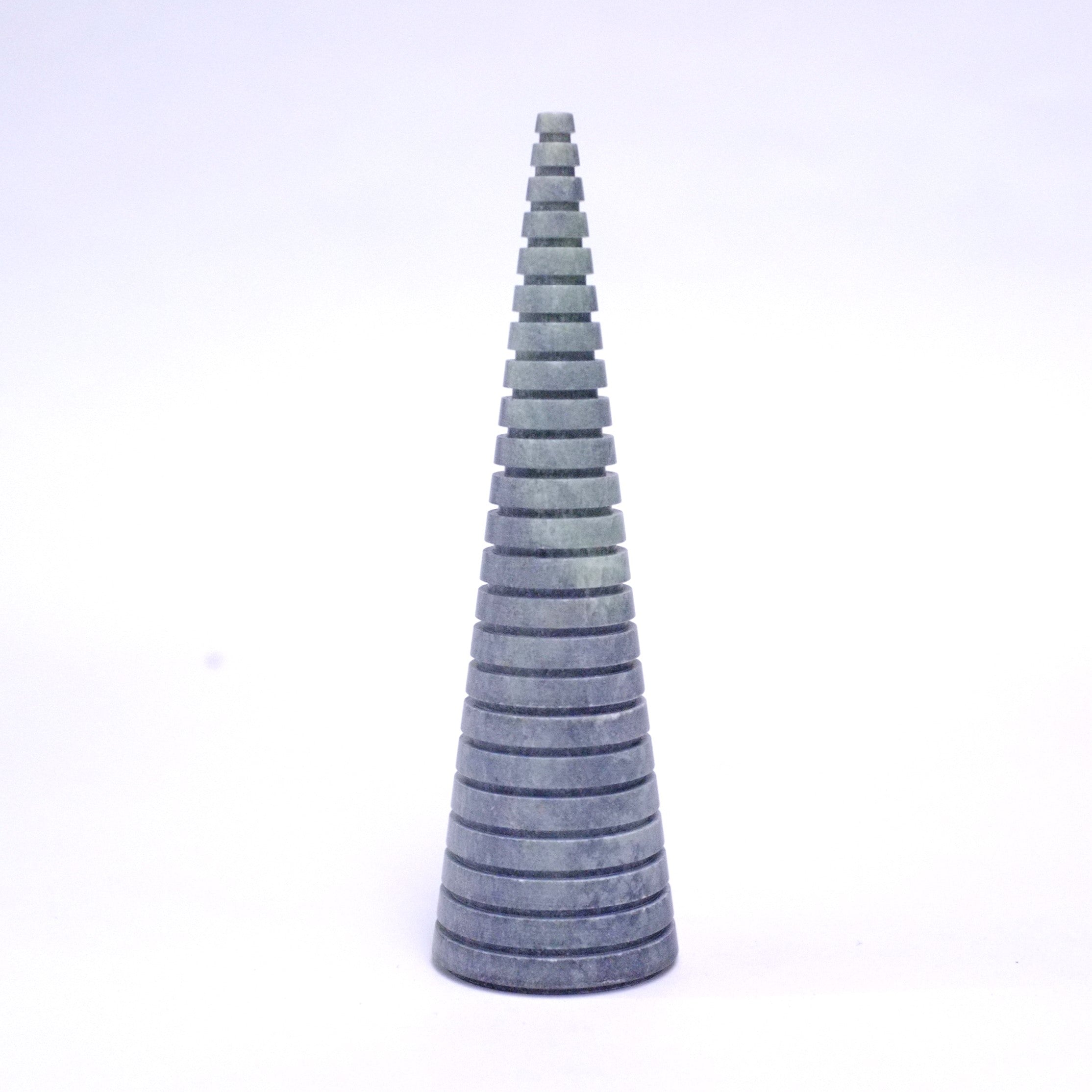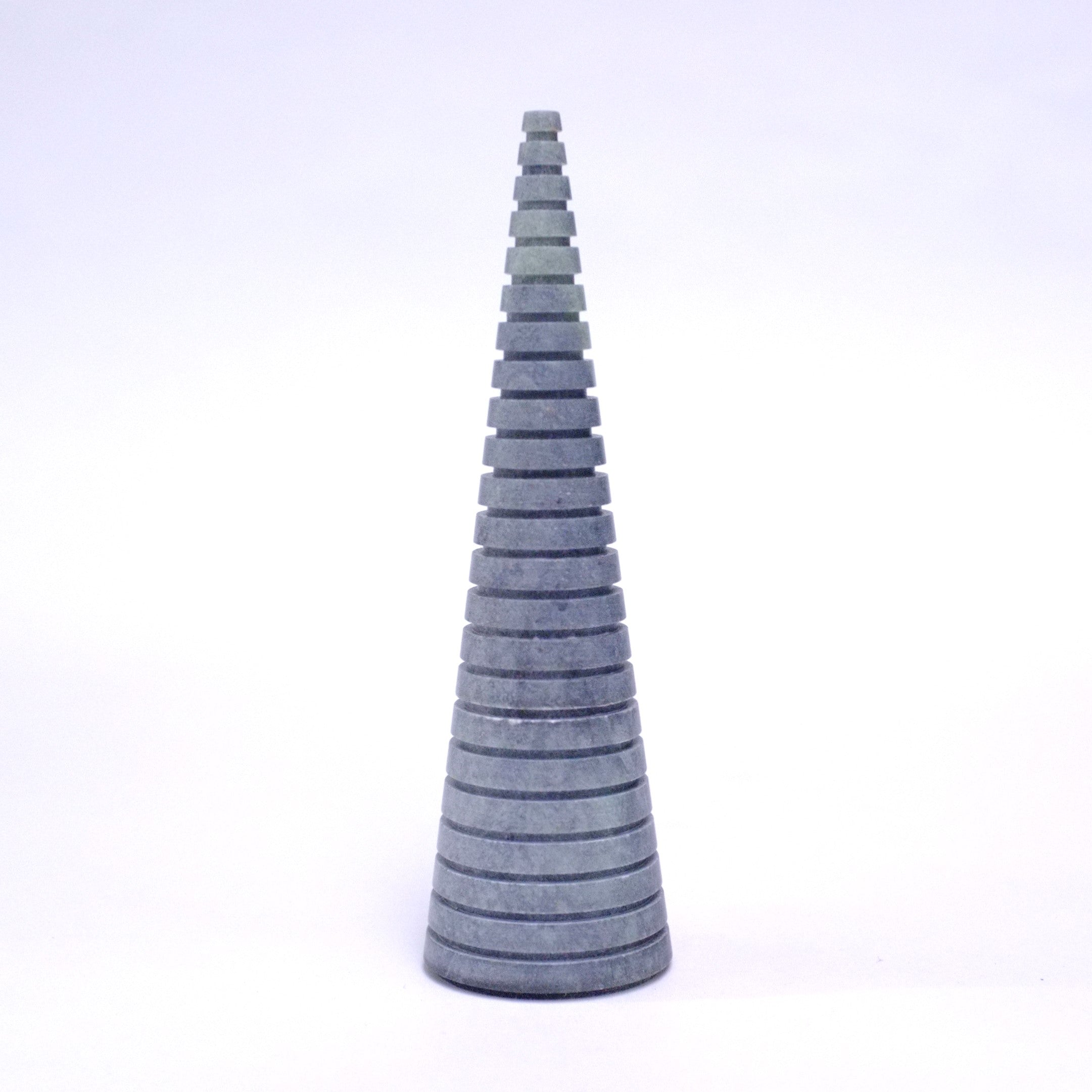 A Scandi-shaped Tree carved from grey Indian soapstone, with subtle ridges adding texture and natural character.