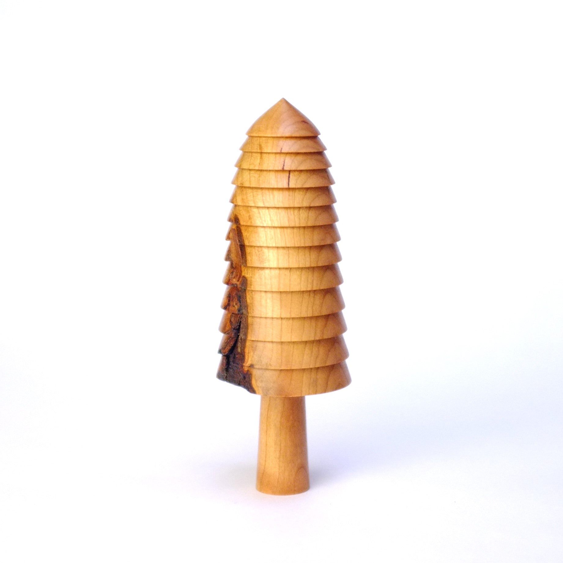 A striking Shell Tree in rich cherry wood, highlighted by a prominent knot that gives it unique, organic charm.