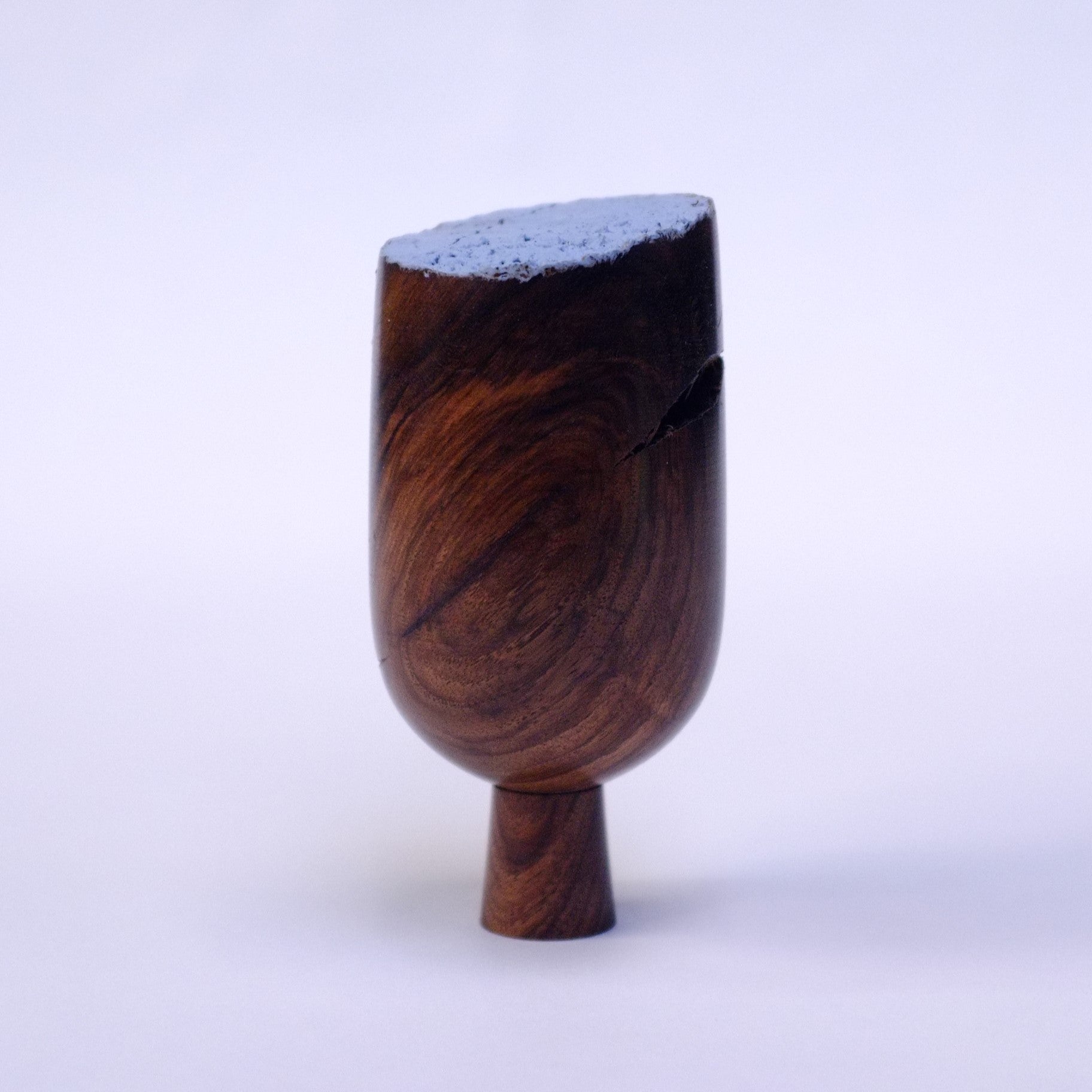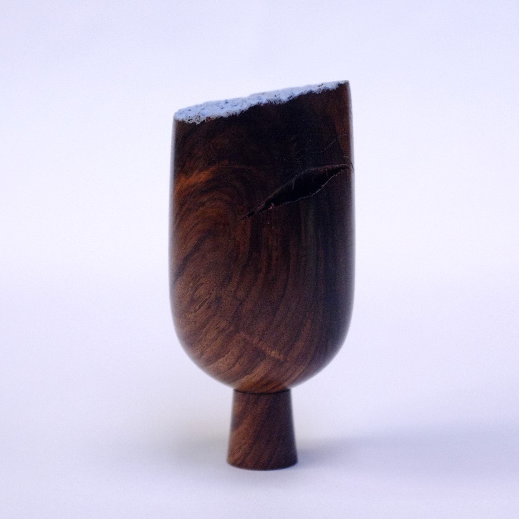 This Tree, made from richly patterned English walnut, features an unturned top finished with the original spray paint used to mark the end of boards of timber - a subtle meeting of raw material and modern design.